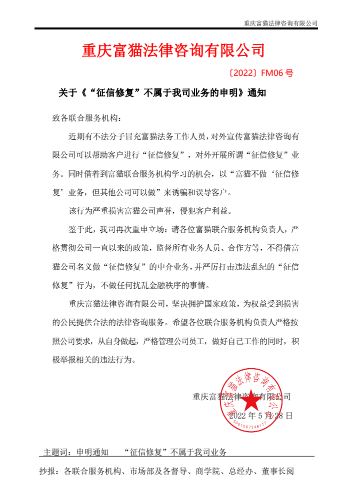 【公告】關于《“征信修復”不屬于我司業務的申明》通知