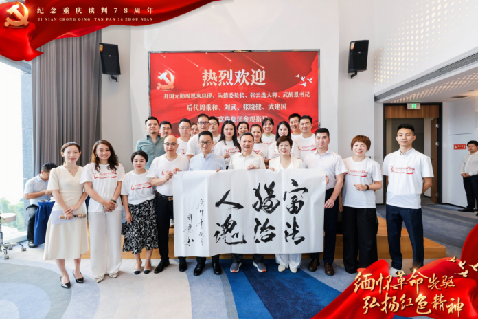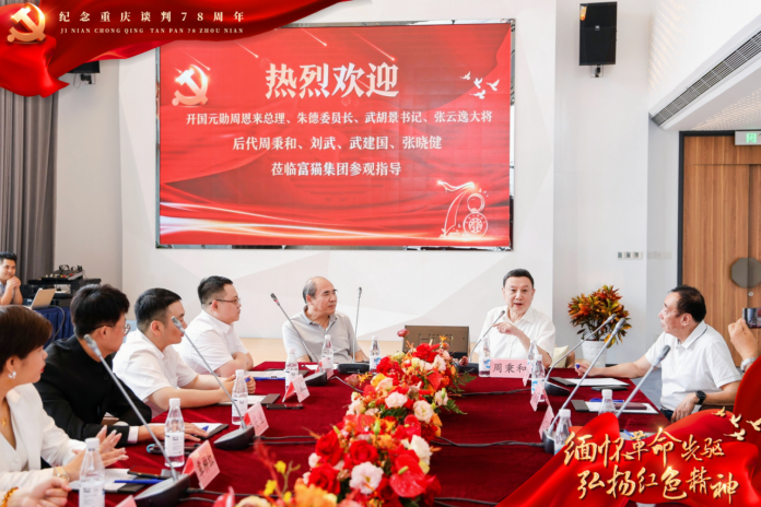 富貓集團榮幸邀請到開國元勛周恩來總理、朱德委員長、張云逸大將后代,周秉和、劉武、張曉健先生蒞臨重慶參觀指導。由重慶宇修法律咨詢有限公司董事周騰越、北京市恒圣(重慶)律師事務所管委會主任盧泰杉、中國延安精神研究會會員代表武健國、北京市恒圣律師事務所主任馮紅峰、北京盛世和宇法律咨詢事務所董事長郭文華、中星健康科技集團董事長胡貴東、重慶市政協委員廖洪海、紅巖革命紀念館館長雷瑩及管理人員等陪同參觀紅巖革命紀念館。