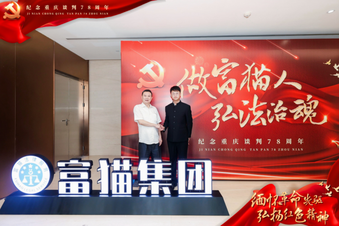 富貓集團一直以銘記底色、弘揚底蘊、增強底氣、守住底線為企業文化,始終堅定支持黨的領導,并在國家的法治建設規劃上,小有成就,起到推動作用,我們感謝黨和國家以及重慶各級領導給予的優質營商環境和發展空間,經過今天這樣的紅色文化座談會熏陶,富貓集團會更加積極地推動法治化進程。